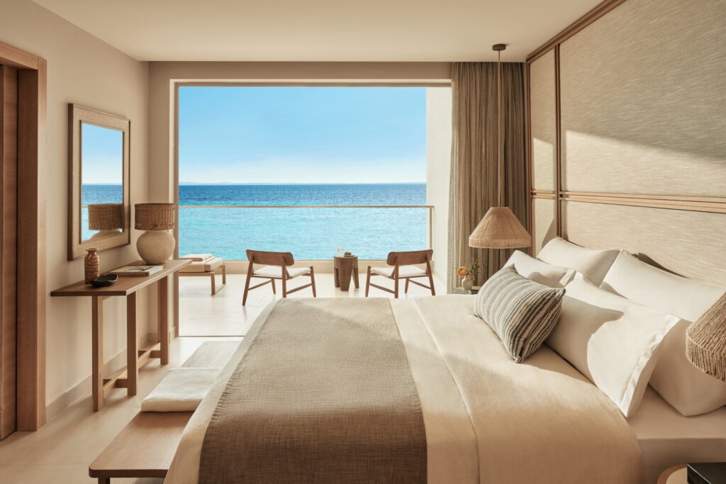 Χαλαρώστε σε ένα γαλήνιο καταφύγιο με οργανικούς χρωματικούς τόνους και φυσικά υφάσματα, όπου τα ευρύχωρα δωμάτια πλημμυρίζουν από άπλετο φυσικό φωτισμό. Από το ιδιωτικό σας παραθαλάσσιο μπαλκόνι μπορείτε να απολαύσετε τη μαγευτική θέα της γαλάζιας θάλασσας.